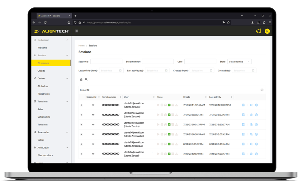 Na stronie powitalnej panelu Powergate Dashboard menedżerowie mogą wyświetlić liczbę sesji, liczbę urządzeń, personalizację skórki, listę pojazdów, szablon, zmodyfikowane pliki i wykorzystaną pamięć AlienCloud (całkowita dostępna pamięć zaczyna się od 2 GB). Aby ułatwić nawigację, została ona podzielona na makrobloki.