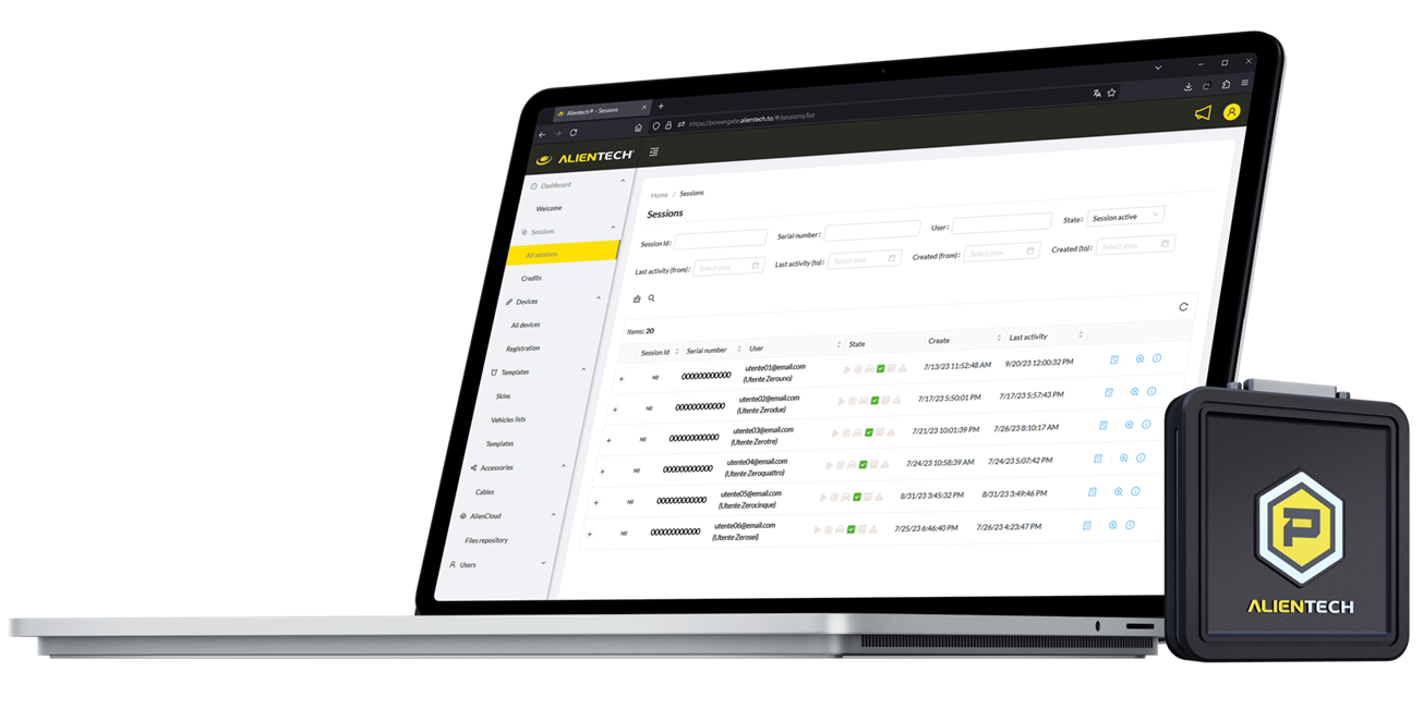 Dodatkowo Chmura zapewnia przestrzeń dyskową online, w której przechowywane są wszystkie szczegóły zmodyfikowanych plików i powiązania z oryginalnymi plikami. Jeśli automatyczne kojarzenie plików jest aktywne, Chmura automatycznie dopasowuje zmodyfikowane pliki do oryginałów odczytanych lub pobranych z bazy danych Alientech. Dzięki temu użytkownik może otrzymać zmodyfikowane pliki na swoim urządzeniu Powergate bez żadnej interwencji.